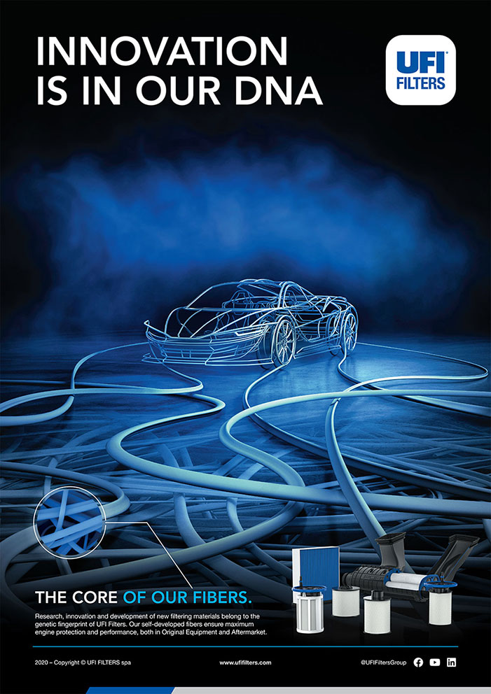 這些獨(dú)立的纖維編織在一起,形成了一輛未來(lái)汽車的形象,從而彰顯了我們專業(yè)技術(shù)的精髓。所描繪出的纖維由UFI集團(tuán)的內(nèi)部研究實(shí)驗(yàn)室開(kāi)發(fā)并自主生產(chǎn),可為OEM和售后市場(chǎng)提供發(fā)動(dòng)機(jī)的最佳保護(hù)并保障最佳性能。