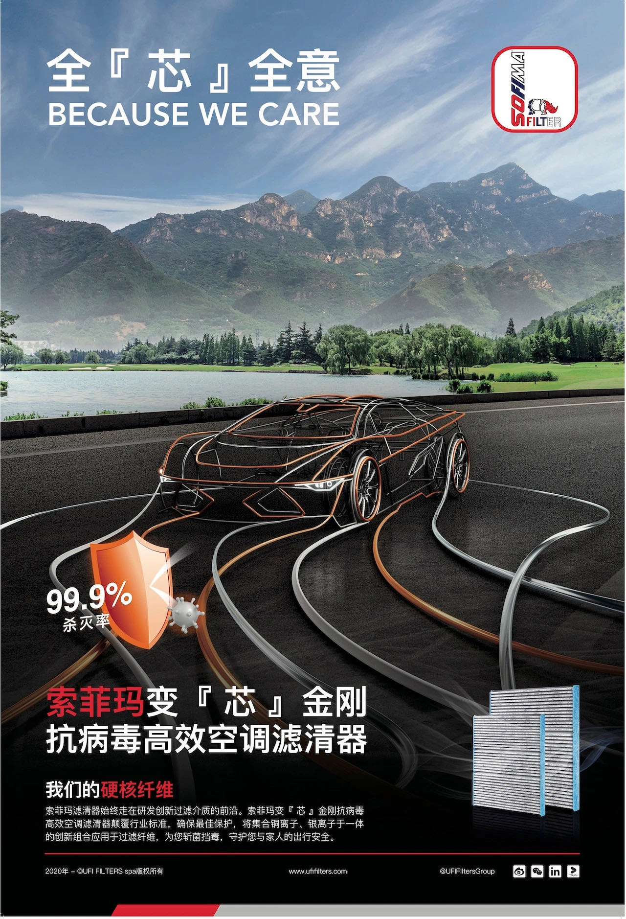 UFI濾清器集團(tuán)售后業(yè)務(wù)總監(jiān)盧卡?貝提先生表示:“這個(gè)創(chuàng)新解決方案是中國(guó)和意大利兩地創(chuàng)新中心的合作結(jié)晶,我們?yōu)榇烁械接芍宰院馈FI濾清器集團(tuán)為這款創(chuàng)新的過濾介質(zhì)取了一個(gè)具有意義的名字:變『芯』金剛。當(dāng)應(yīng)用于空調(diào)濾清器時(shí),這種革新材質(zhì)將提供一種防御屏障,顯著提高車廂內(nèi)空氣質(zhì)量,在目前這個(gè)特殊的時(shí)期給到消費(fèi)者特殊的保護(hù)。”
