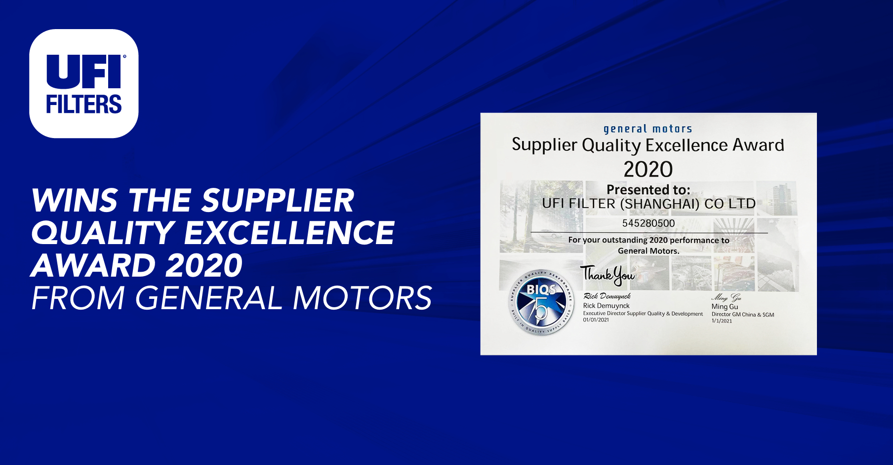 UFI濾清器獲得了來自通用汽車的“2020年度供應(yīng)商質(zhì)量卓越獎(jiǎng)”。